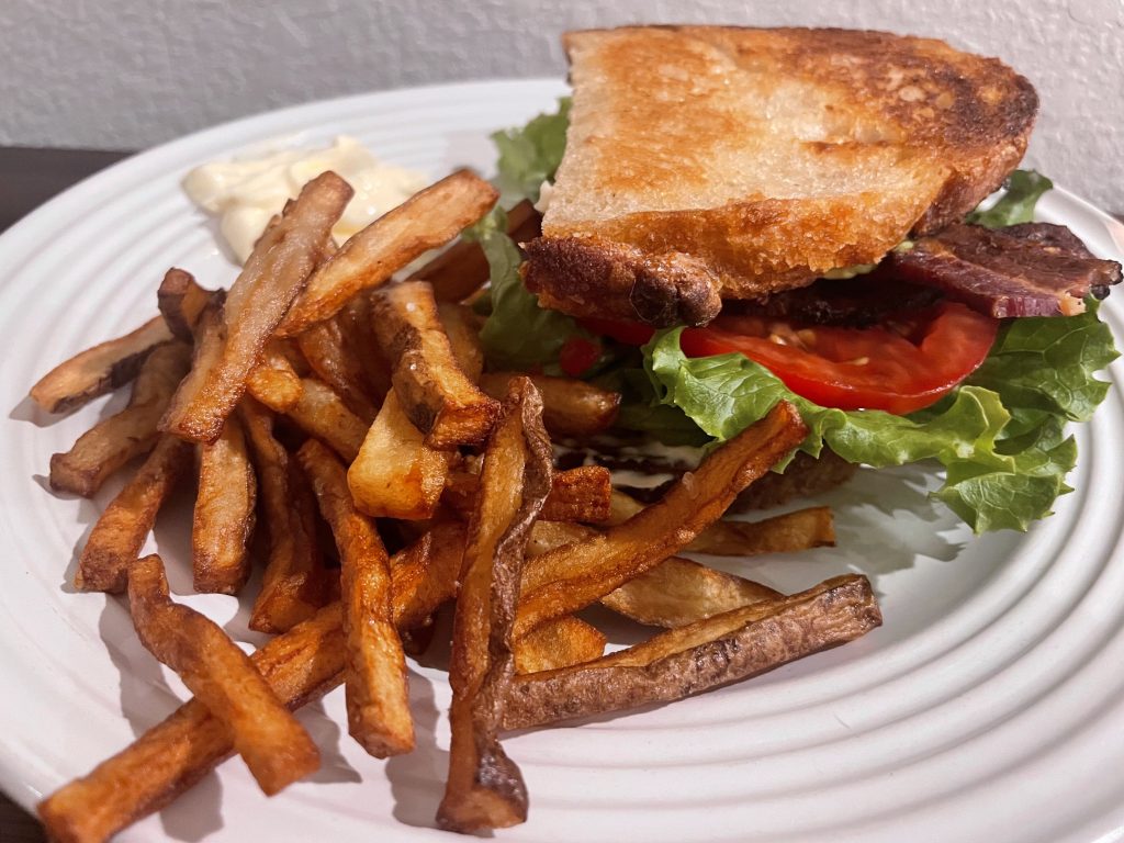 Hatch season is underway and I am so stoked! Every year, HEB (the grocery store chain) puts out limited edition hatch pepper…well…everything! The shining star in my opinion: their Hatch Pepper Bacon. It is…divine. Smoky, peppery, salty, bacon-y heaven. So OF COURSE I had to use it to make a BLT. Add some avocado to fully accentuate the Tex-Mex flavor, mayo for some tang, and crispy fried sourdough…*chef’s kiss* Side note: the bacon is amazing in a breakfast sandwich as well!