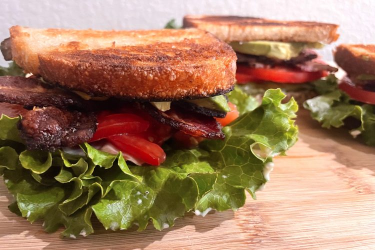 Hatch season is underway and I am so stoked! Every year, HEB (the grocery store chain) puts out limited edition hatch pepper…well…everything! The shining star in my opinion: their Hatch Pepper Bacon. It is…divine. Smoky, peppery, salty, bacon-y heaven. So OF COURSE I had to use it to make a BLT. Add some avocado to fully accentuate the Tex-Mex flavor, mayo for some tang, and crispy fried sourdough…*chef’s kiss* Side note: the bacon is amazing in a breakfast sandwich as well!