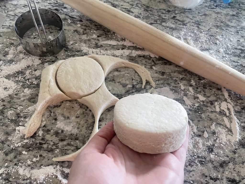- If you don’t have a biscuit cutter, you can use a cup with a thin lip. These biscuits are meant to be big so make sure the cup is around 3 inches across the opening.